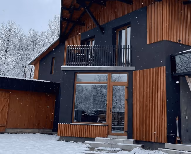 Затишний двоповерховий котедж, повністю виконаний з дерева. Ідеальний варіант для однієї або двох сімей. Тут є все для душевних вечорів: власна альтанка та зручна кухня-студія.