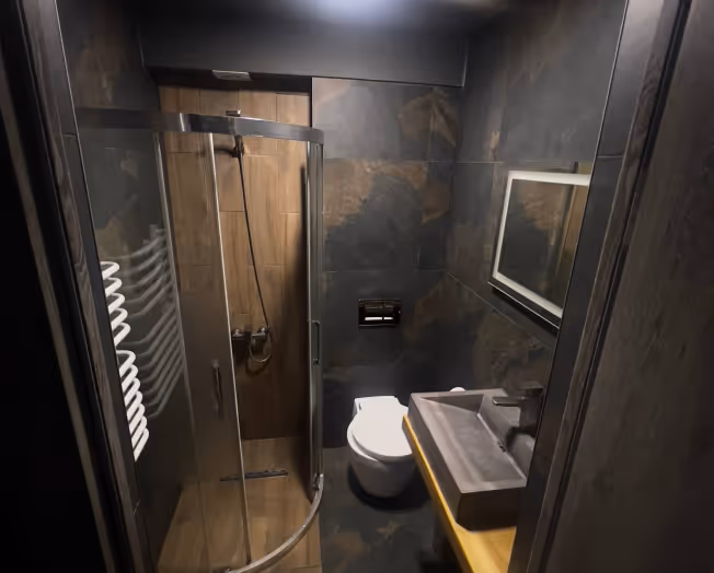 Найбільший котедж у Mi Shelter для компанії, яка цінує приватність. Головна фішка — окремий санвузол у кожній з 4-х спалень. Велика вітальня, тераса та повна комплектація для безтурботного вікенду.